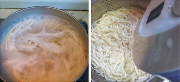 12、锅里煮开水,放入面条。
