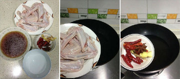 配料:卤肉汁一份,香料一份,姜干辣椒适量,米酒一份
