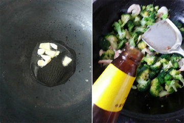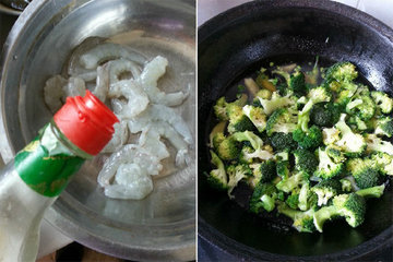 6、放入虾仁,划炒至虾仁全部变红后,放入西兰花,倒入蚝油。快速翻炒均匀即可出锅。
