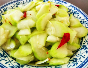 这道素炒葫芦片的做法简单,但也是一道营养丰富又美味的家常菜。这道菜的特点是肉香咸辣,色泽略红,嫩嫩的很好吃。葫芦常吃可增强抵抗力,抗病毒的作用,还有清热利尿、除烦止渴、润肺止咳、消肿散结等疗效。
