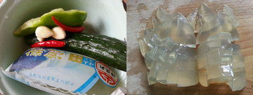 主料:海菜凉粉250克,黄瓜100克,青椒20克