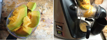 1、如果没有原汁机可以用料理机榨汁去渣取汁。再不然可以蒸熟南瓜压成泥不过风味略有不同哦。