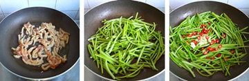 4、起锅,放油,瘦肉入锅炒至变色,盛出备用。