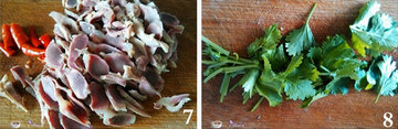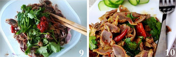 9、鸡胗和香菜装入容器中,放入适量生抽、米醋、麻辣红油,拌匀即可。