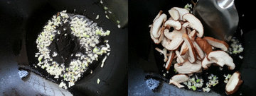 2、香菇切片,蒜拍扁切碎,葱切葱花。