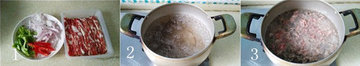 3、放入肥牛,迅速焯水,变色捞出,沥干水分。