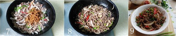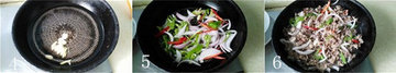 6、放入肥牛,加适量黄酒去腥,翻炒均匀。