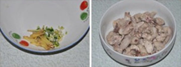 5、将鸡块中加入一勺生抽,一勺料酒腌制20分钟左右。