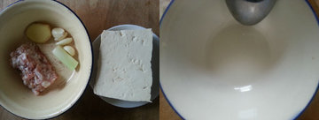主料:豆腐150克,五花肉馅70克,蒜瓣4个