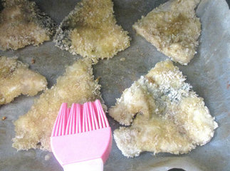 8、烤箱220度预热5分钟,上下火烤5分钟刷上花生油。