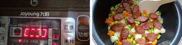 8、把内胆放入煲内,用标准饭模式选长粒米、劲道然后按开始键开始焖饭。
