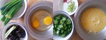 主料:秋葵40克,鸡蛋2个,黑木耳(干)5克