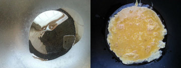 4、油热时加入鸡蛋液。