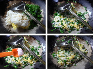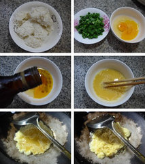 主料:米饭,韭菜(已清洗切碎),鸡蛋(已打入碗中)