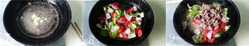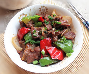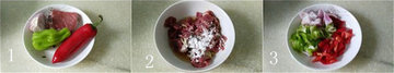 主料:牛肉200克,青辣椒1个,红辣椒1个,洋葱适量,大蒜1瓣,香葱碎适量,生姜适量