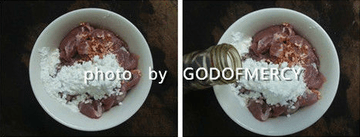 配料:糖1勺,生抽1勺,老抽1勺,料酒1勺,蛋清1个,蚝油1勺,胡椒粉1勺,鸡精1勺