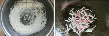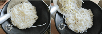 6、锅中加水烧开,将泡过的米粉煮3分钟捞起装碗。
