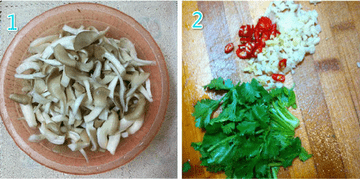 主料:平菇450克,蒜头2瓣,小米椒2个,香菜2棵