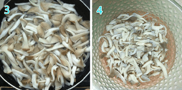 3、锅中加入清水大火烧开,放入平菇煮3-4分钟。