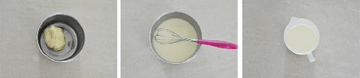 配料:全蛋1个,蛋黄1个,淡奶油100g,牛奶100ml,糖30g