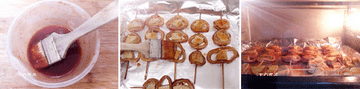 配料:糖醋辣酱适量,烧烤汁适量,竹签适量,蜂蜜水少许