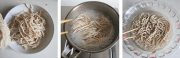 5、将豆皮丝放入刚煮过鸡肉的水中焯熟。