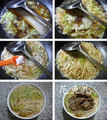 主料:拉面、圆白菜(已撕开清洗)、卤牛腩、卤汁