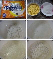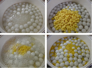3、然后,下入小圆子煮开,煮至小圆子浮起。