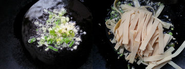 5、豆皮稍有些吸油,所以先放,炒香了再放其他的原料。