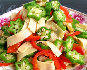 这道红椒豆皮炒秋葵的做法非常简单,也是特别营养丰富的一道家常菜。这道菜是一道快手菜,是以秋葵,豆皮,红椒等制作而成,是营养又健康而且招人喜爱的小菜。豆制品的含钙量比豆子高很多,所以老人、孩子应多吃豆制品。