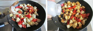 2、烧热锅放少许油, 下入杏鲍菇煸炒。