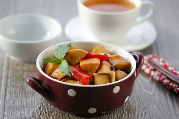 这道三杯杏鲍菇的做法特别简单,营养也非常丰富。这道菜是用杏鲍菇,红辣椒,九层塔等制作而成,杏鲍菇口感肉肉的,素菜能让你吃出肉的味道,非常适合做这道菜。