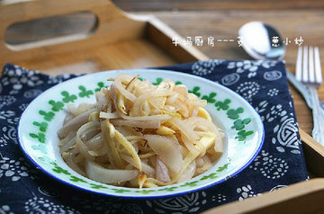 这道洋葱茭白小炒的做法非常简单,营养特别丰富。这道菜是用洋葱半个,茭白一个等制作而成,这样做出来非常好吃。洋葱气味可刺激胃酸分泌,增进食欲。洋葱还能提高胃肠道张力,促进胃肠蠕动,从而起到开胃作用,对萎缩性胃炎、胃动力不足、消化不良等引起的食欲不振有明显效果。