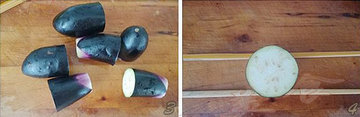 2、开始切片时尽量切薄片,越薄出来的菊花瓣越多。