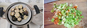 4、用青椒做出的卤是复合味道,用蒸的方法避免了茄子用油太多。