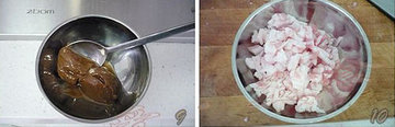 12、下入青椒丁加酱油、盐、糖翻炒熟盛出备用。