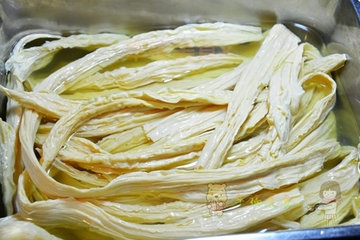 3、腐竹中谷氨酸含量很高,是其他豆类或动物性食物的2~5倍,而谷氨酸在大脑活动中起着重要作用,所以腐竹具有良好的健脑作用,有助于预防老年痴呆症。