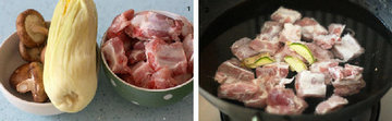 2、排骨洗净,冷水入锅,加入2片姜,大火煮沸后撇净浮沫。