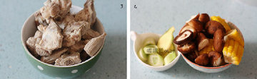 主料:排骨300g,玉米一根,新鲜香菇数个,姜2片+2片,葱一段