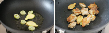 5、锅里放少许食用油,温油时加入剩下的姜片和葱段。
