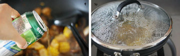 9、加入啤酒,酒的量大约和食材齐平就行。我用了一听啤酒。