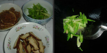 主料:芹菜,香干(已卤熟),牛百叶(已卤熟),小红椒