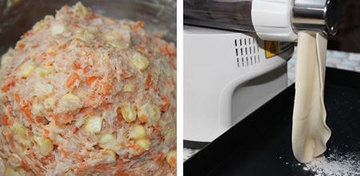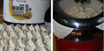 4、用面条机制作饺子皮。