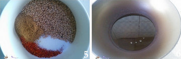 5、煮腊猪耳的时间来做麻辣红油,将辣椒面、花椒面、盐、熟白芝麻倒入容器,拌匀。