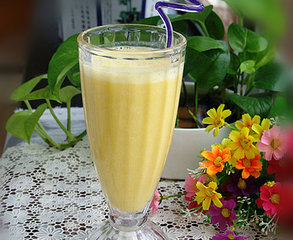 6、打好的玉米汁入冰箱冷藏室30分钟食用,很是清香,爽口。