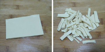 主料:苦瓜一根,鸡蛋两个,豆腐皮适量