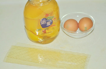 主料:黄桃1罐,鱼胶片4片,鸡蛋白2个