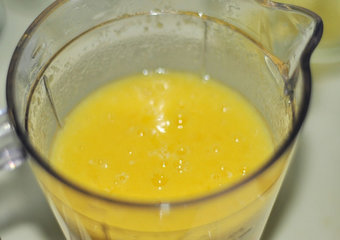 2、黄桃和黄桃水,一起用粉碎机粉碎,备用。