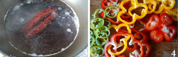 3、香肠洗净后入锅煮熟待用。