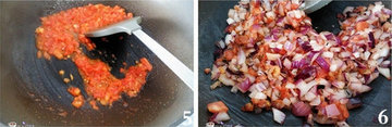 5、锅里加入适量橄榄油,烧到六成热后放入切成小块的西红柿翻炒。(西红柿要去皮)。